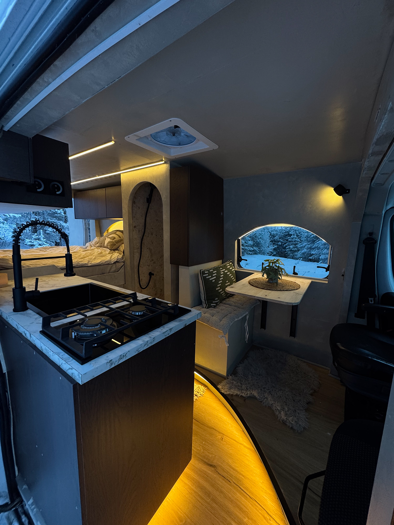Built with care and attention to detail, The Seeker gives you extra space, smart design, and a truly comfortable setup for longer trips. With rotating front seats, a large 140×190 cm bed, and a fully equipped kitchen, it has everything you need to feel at home on the road.